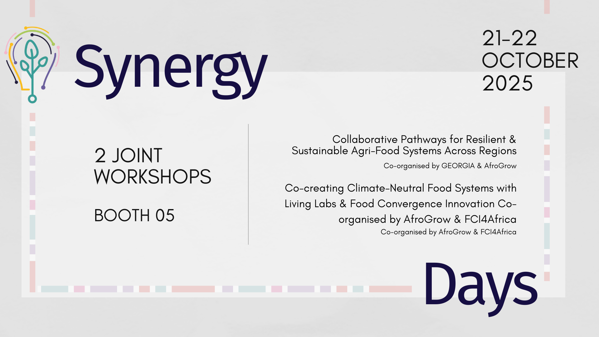Synergy Days 2025 offers a unique space to connect with EU policymakers, researchers, SMEs, digital innovation hubs, and agri-tech pioneers. AfroGrow looks forward to exchanging insights and building bridges between European and African innovation ecosystems.