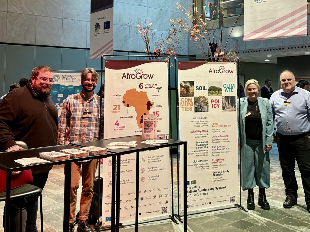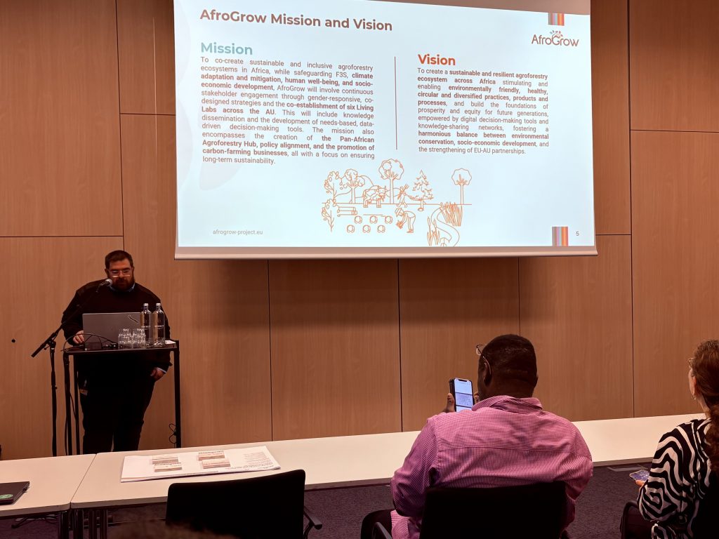 The AfroGrow team presented the project’s vision of “Agroforestry Living Labs for Sustainable African Growth”. Visitors learned how AfroGrow advances agroforestry innovation ecosystems by connecting local knowledge, scientific expertise, and stakeholder-driven collaboration. The booth became a meeting point for fruitful exchanges with researchers, policymakers, and innovators from across Europe and Africa.