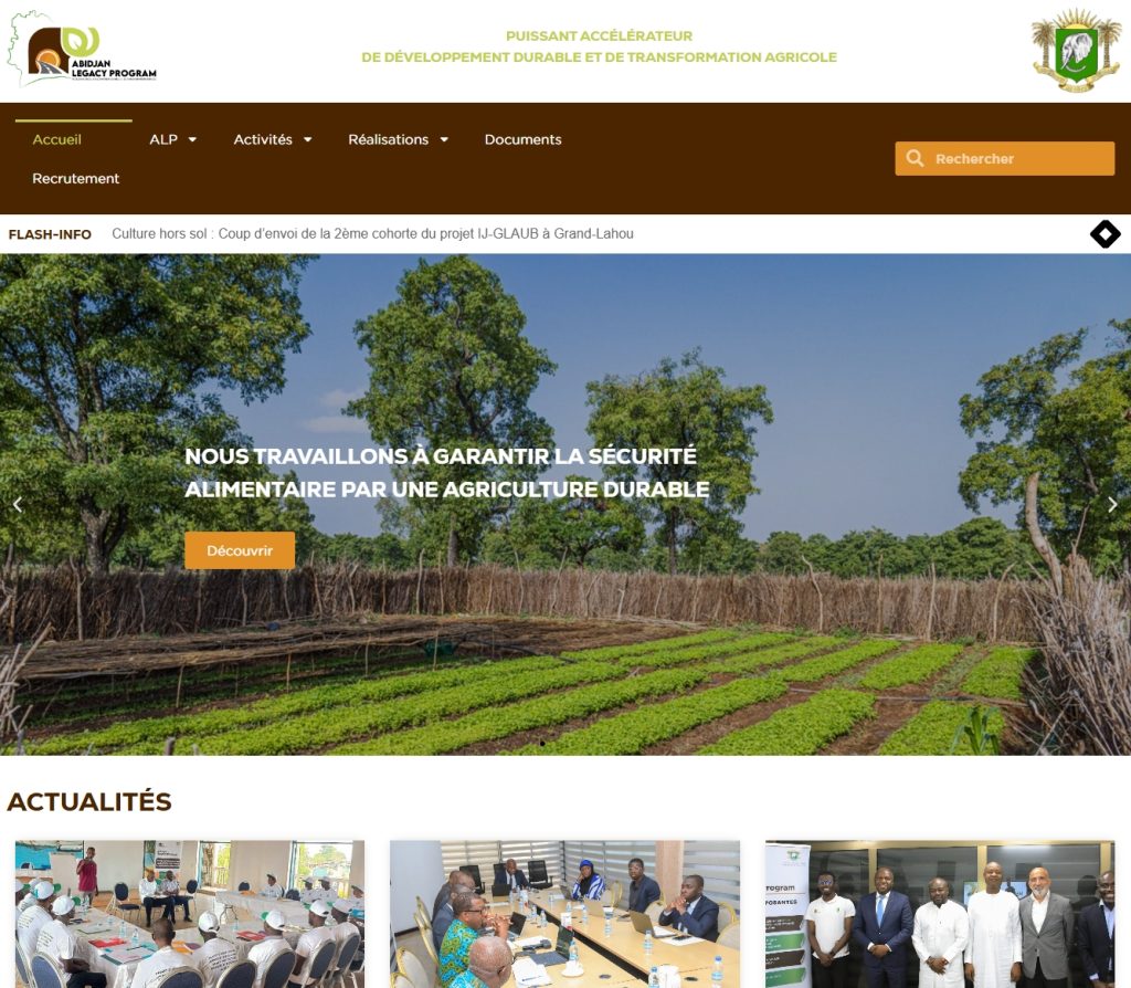 Abidjan Legacy Program (ALP) was launched during the 15th session of the Conference of the Parties to the United Nations Convention to Combat Desertification (COP 15), held in Abidjan from May 9 to 20, 2022. This ambitious program aims to restore degraded ecosystems, significantly boost agricultural production, and improve the living conditions of rural populations, with a particular focus on youth and women. ALP is a national priority, endorsed by the Head of State. Its implementation is expected to deliver major impacts by addressing deforestation, restoring forests and degraded lands, enhancing soil productivity, strengthening existing value chains, and identifying those of the future.